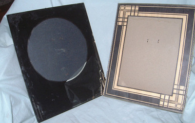 2 lot antique art deco picture frame reverse painted glass +
