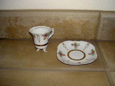 Title (ebay affiliate link): demitasse size cup and saucer with a flower and gold design by Nasco Japan