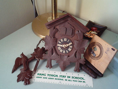 Vintsge Wind Up Cuckoo Clock Made In Germany G. M. Angem Antique Cuckoo Wood Clo