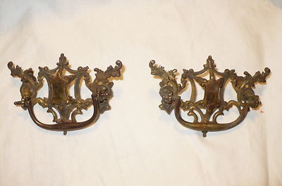 antique vintage drawer pull knob handle set of 2 lot brass hardware cabinet pair