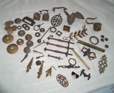 Title (ebay affiliate link): Large lot of 55 Antique/Vtg HARDWARE TRIM Lamp Furniture Lamp Repair Restoration