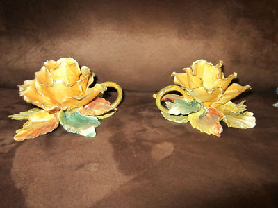 Capodimonte Candle Holders YELLOW Lovely