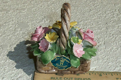 Vint CAPODIMONTE Applied ROSE & FLORALS Woven BASKET Figurine w/ Orig STICKER