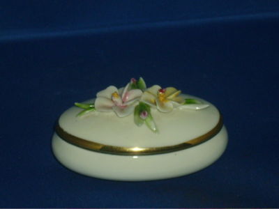 Title (ebay affiliate link): Capodimonte Made in Italy Trinket Box w/Applied Flowers