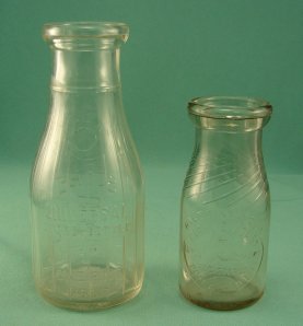 2 EMBOSSED MILK BOTTLES ~ PARKVIEW & UNIVERSAL STORE