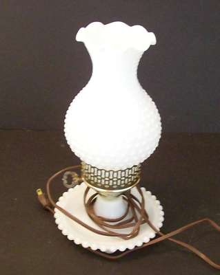 VINTAGE 11 1/2" White Hobnail Milk Glass Lamp