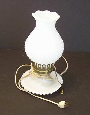 VINTAGE 11 1/2" White Hobnail Milk Glass Lamp