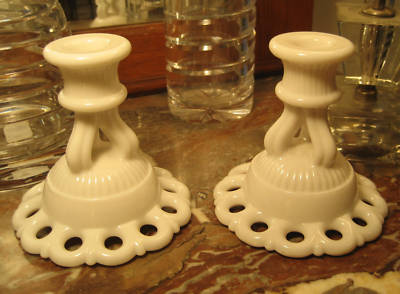 WESTMORELAND Doric Milk Glass Set of 2 Candle Holders