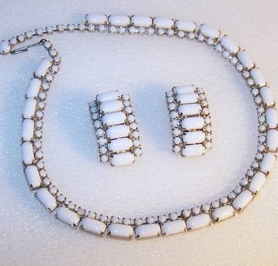 VINTAGE MILK GLASS CABOCHON NECKLACE DEMI PARURE Kramer