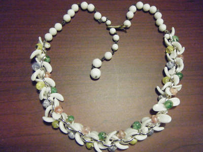 Vtg W German Milk/Pastel Givre/Glass Leaf Bead Necklace