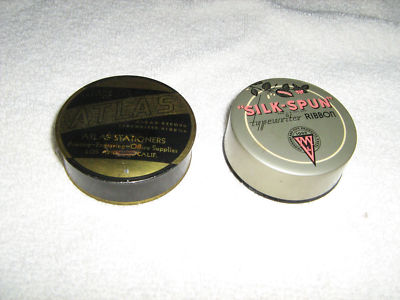 TWO VINTAGE TYPEWRITER TINS SILK SPUR PARK RIDGE N.J. & LOS ANGLE CA. ATLAS