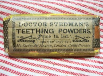 Title (ebay affiliate link): Dental-vintage-Doctor Stedman's Teething Powders-Gum Lancet-Paper-NR