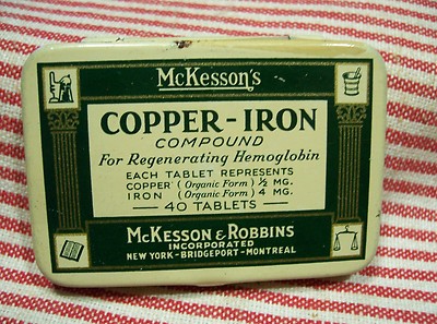 Title (ebay affiliate link): tin-Medical-McKesson's-Copper-Iron Tablets-Hemoglobin-full-hinged-NR