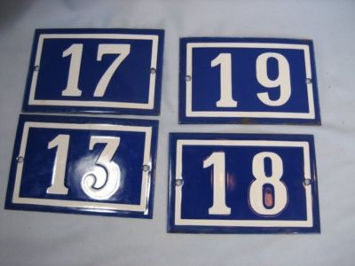 Title (ebay affiliate link): Antique Four French Blue/White Porcelain Enameled House Numbers Plaque c.1920
