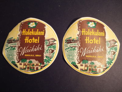 Title (ebay affiliate link): 2 Halekulani Hotel Waikiki Honolulu HAWAII Vintage Travel Luggage Label