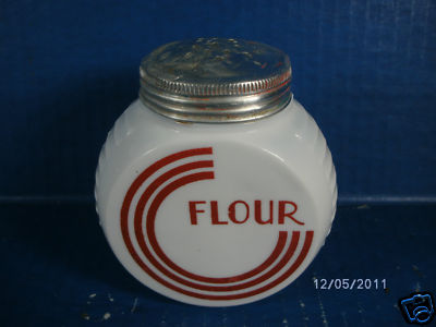 VINTAGE MILK GLASS ART DECO FLOUR RANGE SHAKER