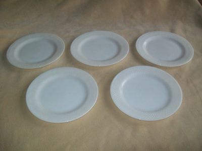 5 Vintage set of Opaque White Milk Glass Dinner Plates Federal Glass dish lot 9"