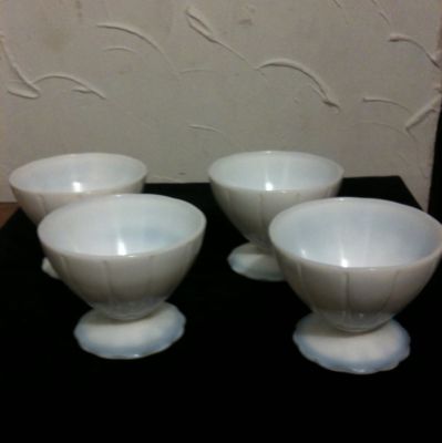 Title (ebay affiliate link): SET OF MILK GLASS DESSERT ICE CREAM ANTIQUE DISHES White Blue Glow Red Fire