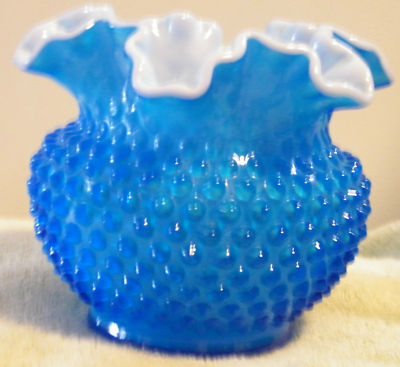 FENTON HOBNAIL BLUE TO MILK CASED ROSE BOWL LARGE