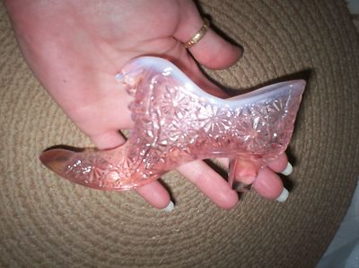 Title (ebay affiliate link): FENTON MARKED PINK GLASS SHOE WITH MILK GLASS WHITE TOP/RIM