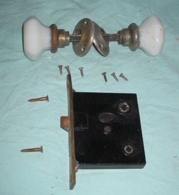 Title (ebay affiliate link): Vintage milk glass door knob set with Gorbin lock hardware