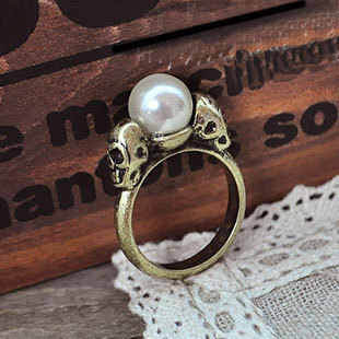 Title (ebay affiliate link): New Antique White Pearl Beads Bronze Double Skull Skeleton Fashion Ring H132