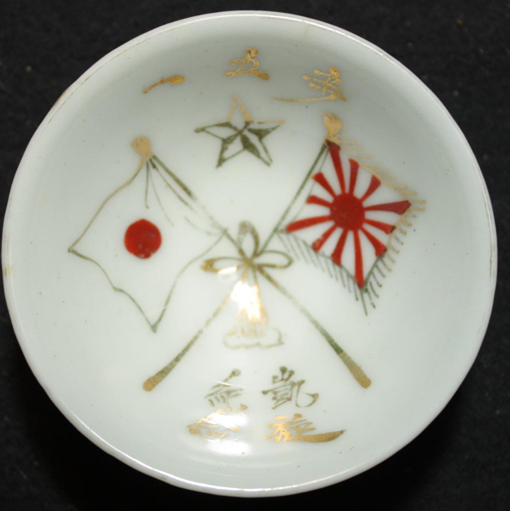 Antique Japanese WW2 FLAGS VICTORY army sake cup