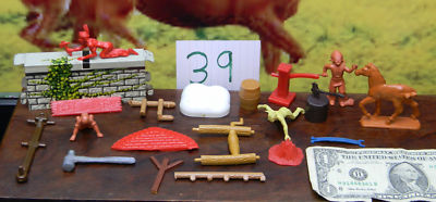 Title (ebay affiliate link): western fort play set figures plastic soft rubber Tin camp fire well pump toy