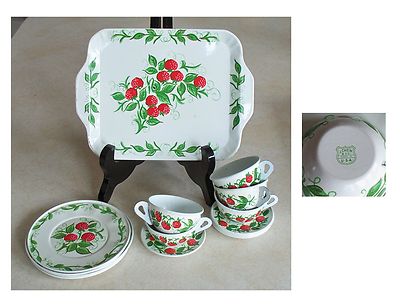 Title (ebay affiliate link): Vintage 16 Piece Child's Toy Tin Tea Serving Set J Chein Strawberries