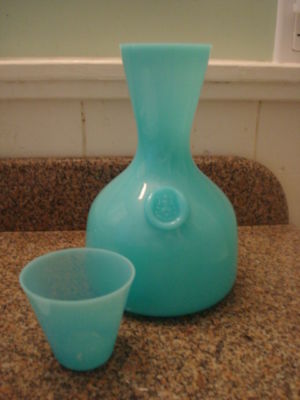 Gorgeous Vintage Powder Blue Milk Glass Bottle and Glass