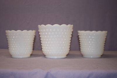 3 FIRE KING OVEN DISHS HOBNAIL MILK GLASS 2 SIZES NICE