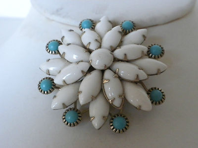 Vintage Pin w/ Milk Glass & Turquoise Stones