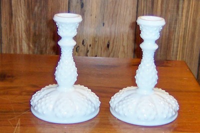 Title (ebay affiliate link): ( 2 ) Fenton Milk White Glass Hobnail Candle Sticks 7-1/2" High, Signed