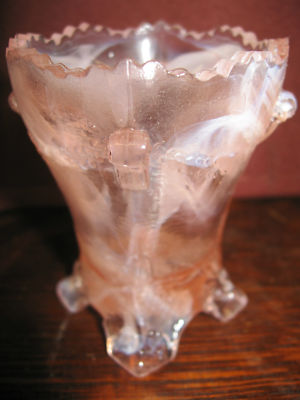 Pink & white milk slag glass swag pattern tabletop toothpick / match holder art