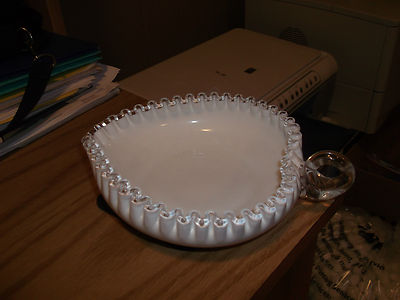 FENTON SILVER CREST HEART SHAPE MILK GLASS CANDY DISH