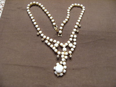 VINTAGE WHITE MILK GLASS RHINESTONE NECKLACE GORGEOUS