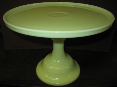 Vaseline yellow milk Glass cake serving stand plate platter pedistal uranium art