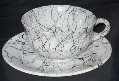 Title (ebay affiliate link): retro era DRIZZLE cup saucer milk glass FROST string PATTERN Hazel Atlas McKEE