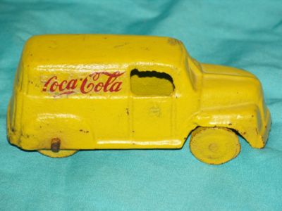 Title (ebay affiliate link): ANTIQUE CAST IRON COCA COLA PANEL VAN YELLOW (RARE) CLOSED FRONT WINDOWS