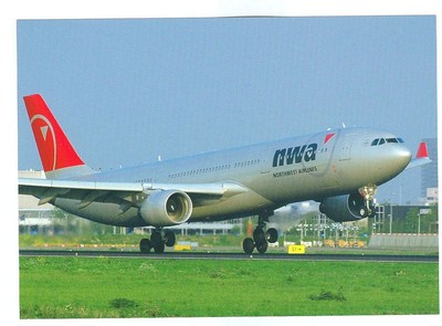 NORTHWEST AIRLINES USA AIRBUS A330-300 N803NW POSTCARD @ AMSTERDAM 2007