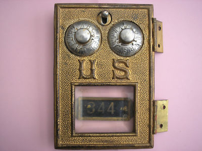Title (ebay affiliate link): Vintage Indianapolis brass double lock Post Office Door Mailbox Safe Bank U S