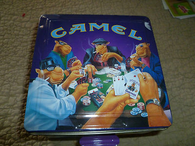 Title (ebay affiliate link): Camel's Smoking Joe Collectible Playing Cards & Poker Chips in Tin HTF