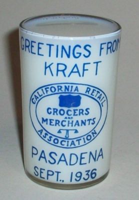 Title (ebay affiliate link): KRAFT PROMOTIONAL GLASS TUMBLER CALIFORNIA RETAIL GROCERS & MERCHANTS ASSOC 1936