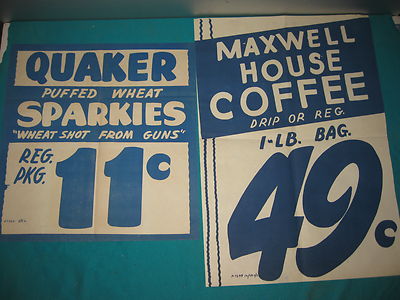 vintage general store display advertising signs quaker sparkies maxwell house co