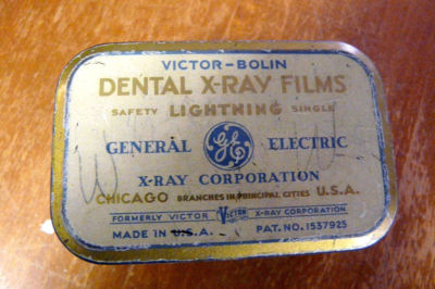 Title (ebay affiliate link): Dentist Antique Tin Box by Victor Bolin General Electric Dental Films