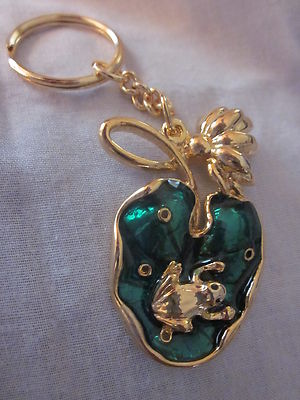 Title (ebay affiliate link): New Vintage FROG ON A LILY PAD KEYCHAIN-Goldtone/enamel