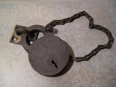 Title (ebay affiliate link): Vintage Lock Large Padlock No Key Still Attached to Hasp & Chain OLD!!