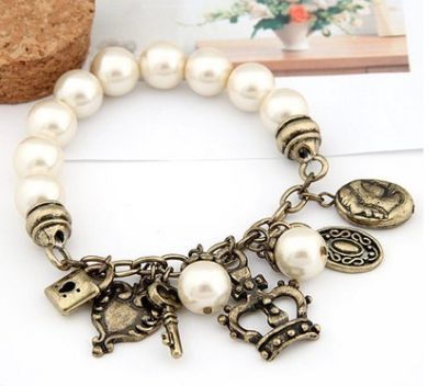 Title (ebay affiliate link): New Coming Vintage Style Bronze Crown Queen Lock Key Heart Pearl Chain Bracelet