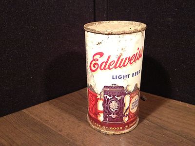 Title (ebay affiliate link): Edelweiss Light Flat Top Beer Can White With Steins So Bend Indiana 12 Oz Empty
