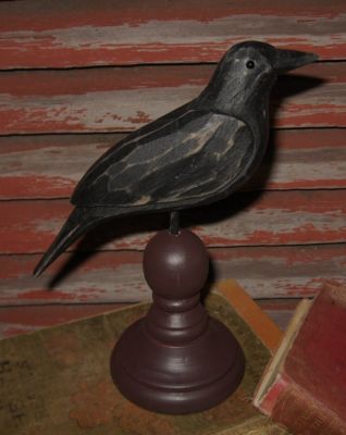 Title (ebay affiliate link): Handcarved BLacK CROW Raven BiRd Statue~Spindle*For Wood Table/Shelf/Desk/Mantel